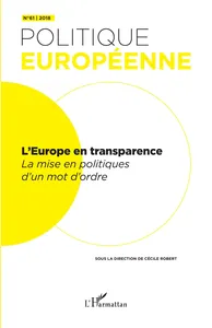 Au sommaire de ce numéro de Politique européenne : La transparence comme nouvel horizon des démocraties européennes / Traduire la transparence aux niveaux nationaux / La juridicisation du lobbying en France / Le Médiateur européen héraut de la transparence / Twenty-five years of access to documents in the Council of the EU / Les dispositifs de la transparence entre instruments de gouvernement et « machines à scandales » / Lectures de Théorie critique du lobbying et d’Europe’s Border Crisis. Biopolitical Security and Beyond.
