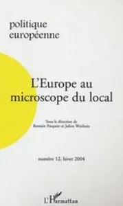 L'Europe au microscope du local n° 12, 2004/1 - pagesPages 5 à 21L'europe au microscope du local. Manifeste pour une sociologie politique de l'intégration communautaire. Par Romain Pasquier, Julien WeisbeinPages 22 à 41Les fonds européens régionaux en Midi-Pyrénées : gouvernance polycentrique, locale ou en trompe-l'œil ? Par Xavier Marchand-Tonel, Vincent SimoulinPages 42 à 65Politique européenne de la ville et gouvernement local en Espagne et en Italie Par Romain Pasquier, Gilles PinsonPages 66 à 83Cultiver l'Europe. Elements pour une approche localisée de l'« européanisation » des politiques culturelles Par Thomas HeliePages 84 à 104L'Europe comme cause politique proche ? Par Julian Mischi, Julien WeisbeinPages 105 à 121La citoyenneté européenne face au fédéralisme allemand : l'uniformité de l'Europe à l'épreuve de la variété de l'Allemagne. Par Sylvie StrudelPages 122 à 125Représentation des intérêts professionnels dans le secteur agricole en République Tchèque et en Bulgarie : quelle européanisation de l'action ? Par Iglika YakovaPages 126a à 135aGilles de Kerchove et Anne Weyembergh (dir.) (2003), Quelles réformes pour l’espace pénal européen ?, Bruxelles, Editions de l’Université de Bruxelles, collection « Etudes européennes ».Pages 126b à 135bEmiliano GROSSMAN Bruno Théret, Protection sociale et fédéralisme. L’Europe dans le miroir de l’Amérique du Nord, Bruxelles, P. I.E.-Peter Lang/Presses universitaires de Montréal, 2002,495 p.